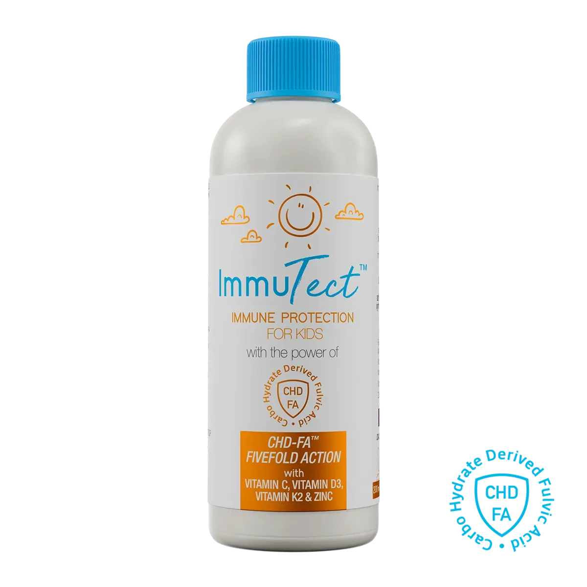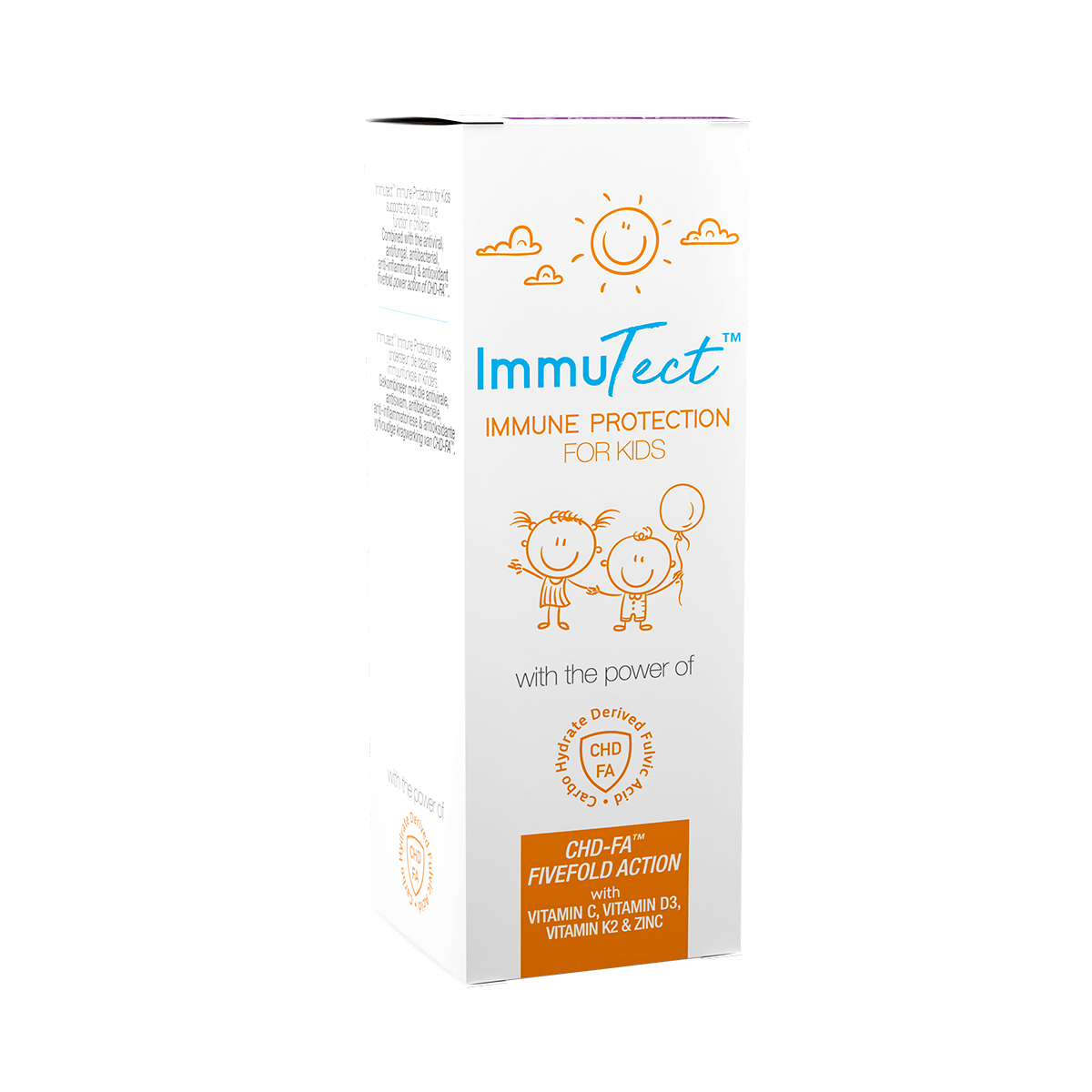 Immutect™ Immune Protection for Kids supports the daily immune function in children. Combined with the antiviral, antifungal, antibacterial, anti-inflammatory & antioxidant fivefold power action of CHD-FA™.